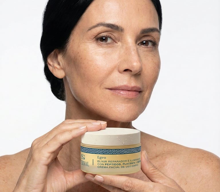 Egeo de Eternal es un elixir reparador e iluminador que ofrece una acción anti-age integral que reafirma, regenera y revitaliza la piel desde las capas profundas.