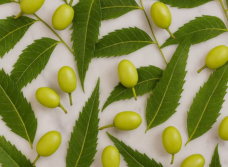 El aceite de neem, obtenido de las semillas del árbol Azadirachta indica originario de la India, ha sido utilizado durante siglos en la medicina ayurvédica. Su composición rica en ácidos grasos, limonoides y compuestos fenólicos le otorga propiedades antibacterianas, antifúngicas, antiinflamatorias y antioxidantes, convirtiéndolo en un ingrediente destacado de la cosmética natural. Se emplea para tratar el acné, equilibrar la producción de grasa, calmar irritaciones y proteger la piel frente a infecciones y agresiones externas.